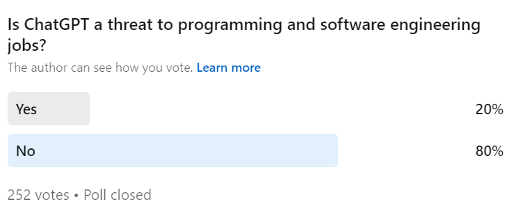Like all machine learning tools—ChatGPT is trained on existing data as it doesn’t possess the ability to do programming well. For software to be created well, engineers need to understand the intended purpose and goals, not just throw out half-baked code!